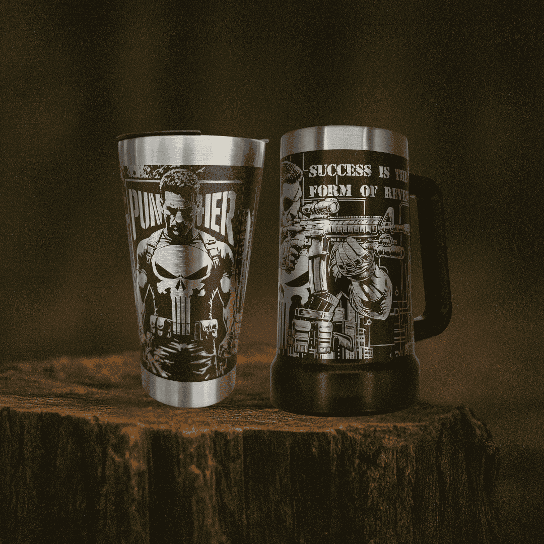 Punisher #01 – Caneca Térmica Preta 710ML - Gravação 360° a Laser + Brinde