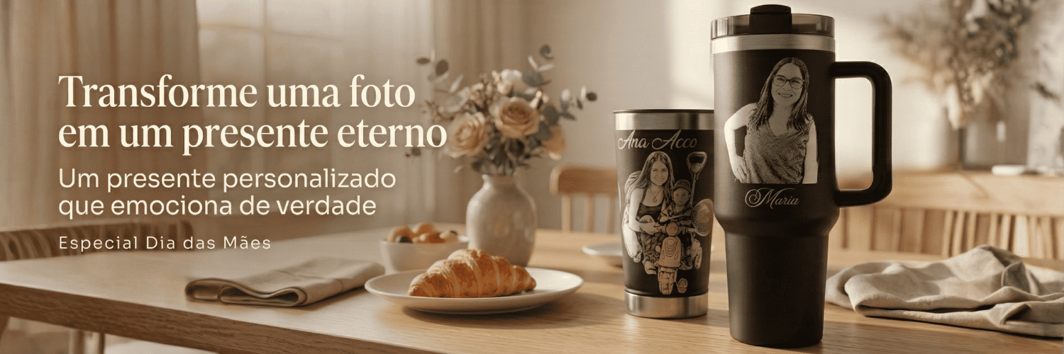 Economize R$ 100Flávio 2026 – Copo Térmico Preto Personalizado 360° a Laser + Brinde