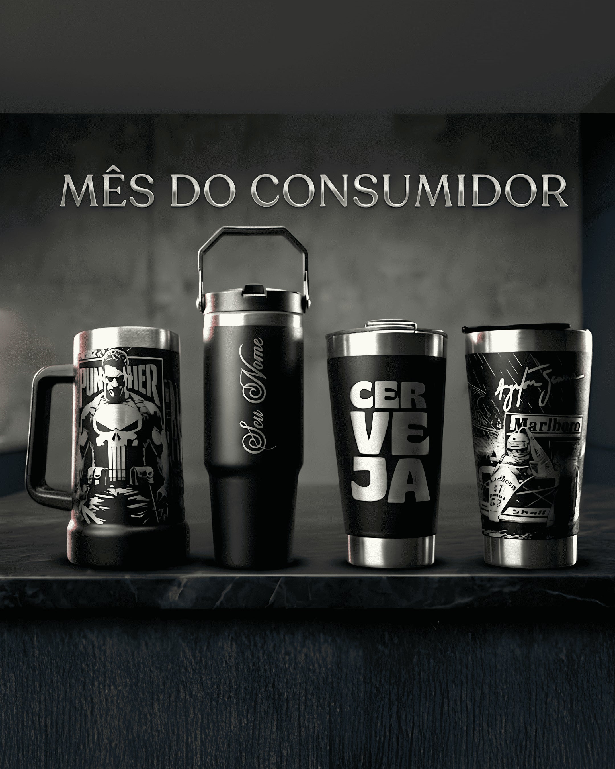 Mito & EUA #04 – Copo Térmico Preto Personalizado 360° a Laser + Brinde