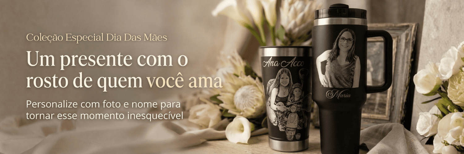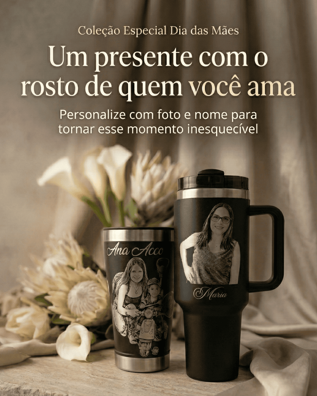 Presente Premium Mães | Copo Térmico (Foto e Nome) + Caixa e Chocolates | Frete Grátis