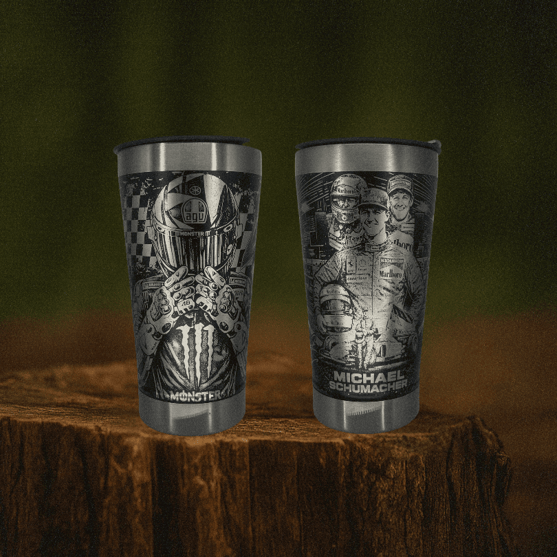 Michael Schumacher – Copo Térmico Preto Personalizado 360° a Laser + Brinde