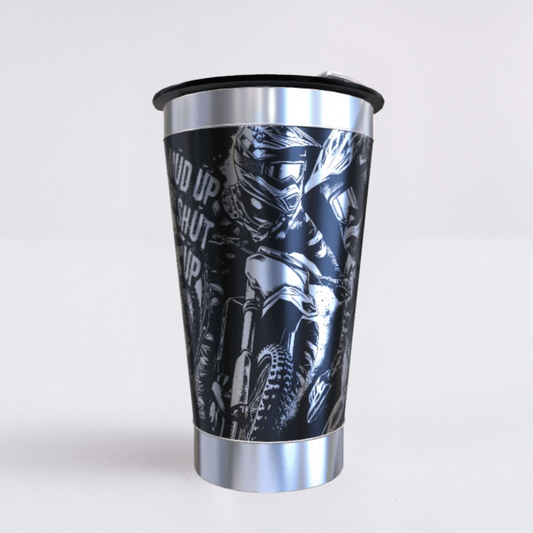 Economize R$ 100Moto Cross – Copo Térmico Preto Personalizado 360° a Laser + Brinde