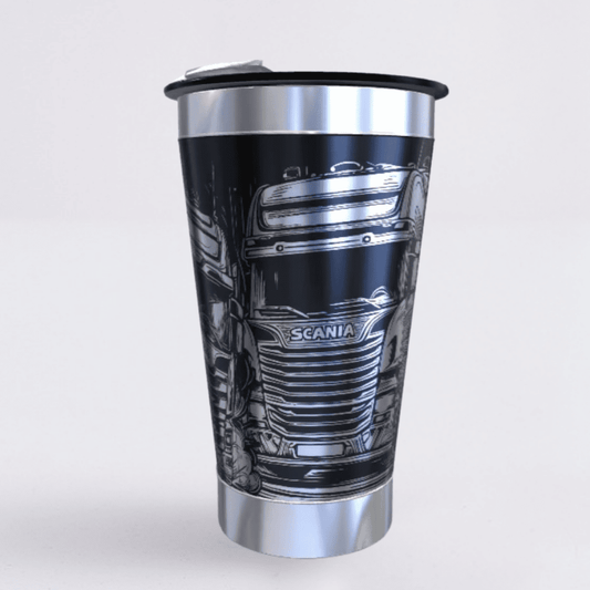 Economize R$ 100Scania – Copo Térmico Preto Personalizado 360° a Laser + Brinde
