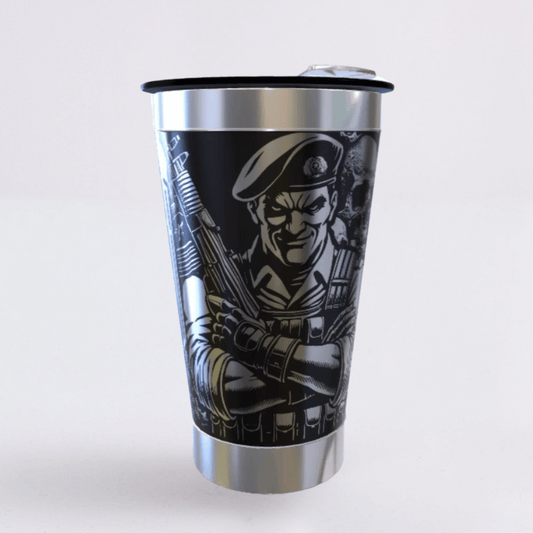 Economize R$ 100Militar – Copo Térmico Preto Personalizado 360° a Laser + Brinde