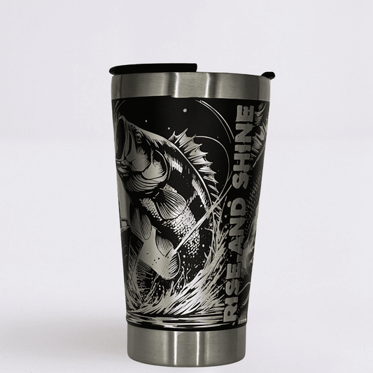 Economize R$ 100Pescaria – Copo Térmico Preto Personalizado 360° a Laser + Brinde