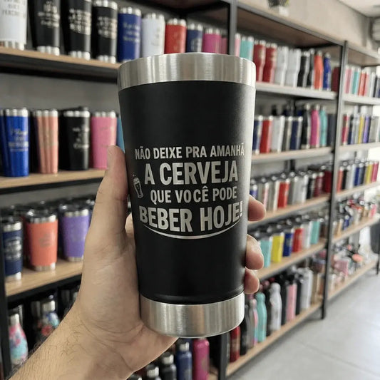 Economize R$ 90Meme #04 – Coleção Cervejeiros | Copo Térmico Preto + Brinde