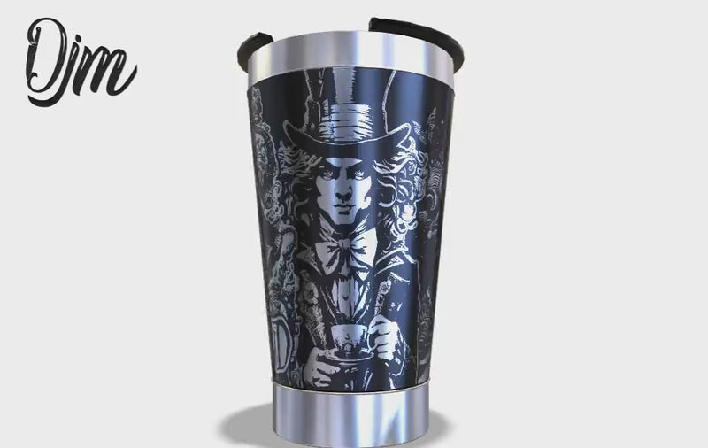 Alice País Das Maravilhas – Copo Térmico Preto Personalizado 360° a Laser + Brinde