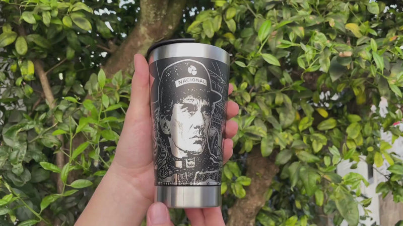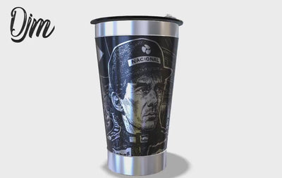 Ayrton Senna – Copo Térmico Preto Personalizado 360° a Laser + Brinde