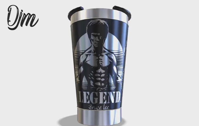 Bruce Lee – Copo Térmico Preto Personalizado 360° a Laser + Brinde