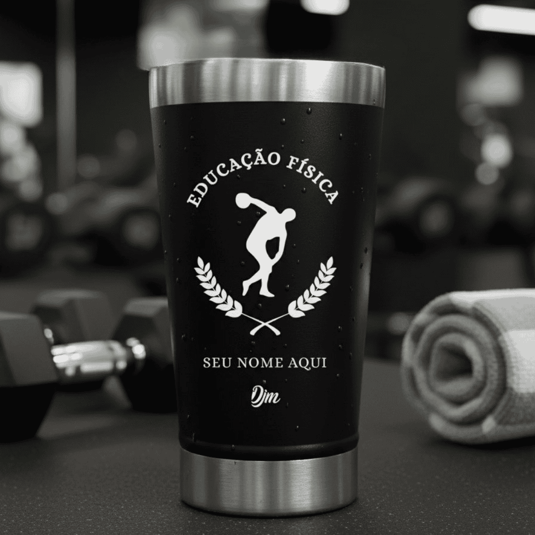 Educação Física – Copo Térmico Preto Personalizado | Seu Nome + Brinde
