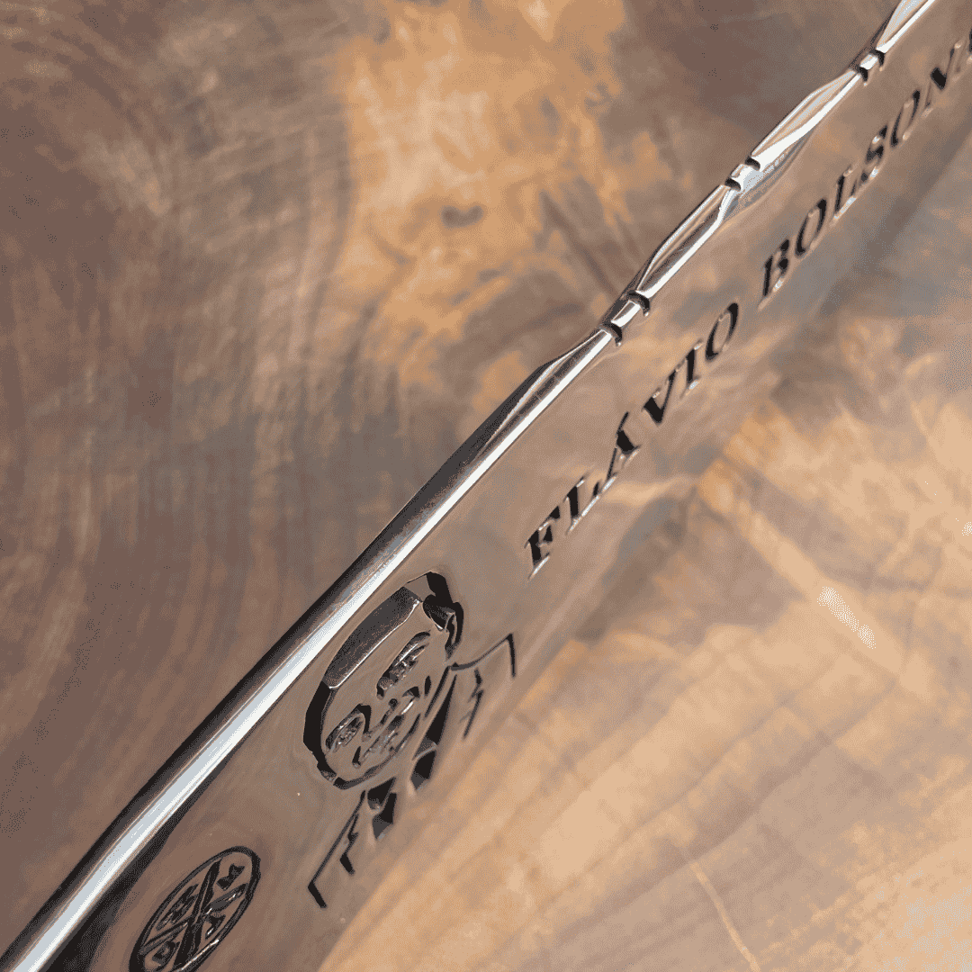•Lâmina vazada exclusiva + seu nome;