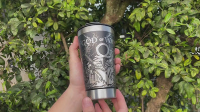 God Of War – Copo Térmico Preto Personalizado 360° a Laser + Brinde