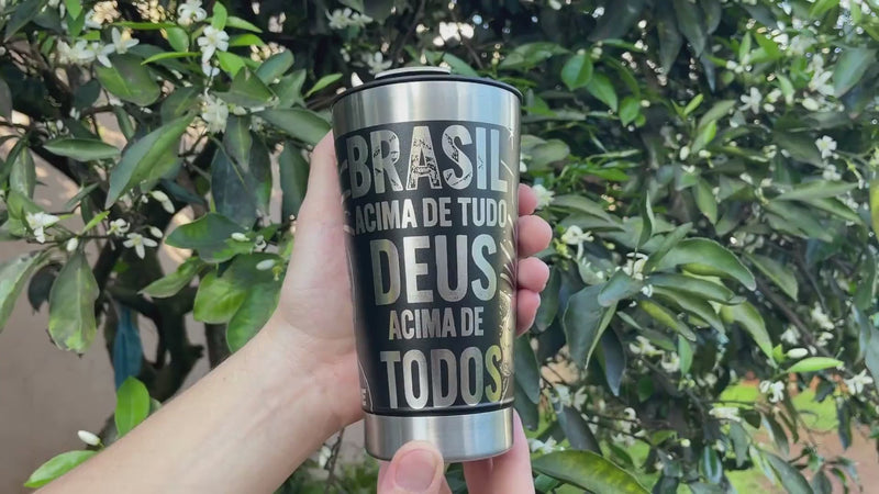 Mito Patriota #05 – Copo Térmico Preto Personalizado 360° a Laser + Brinde