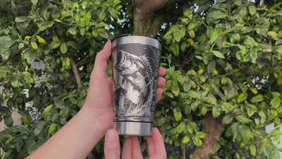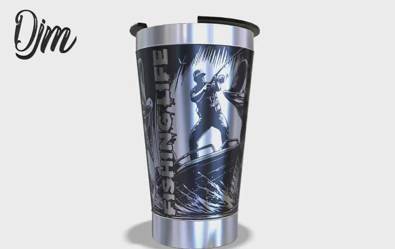 Pescaria – Copo Térmico Preto Personalizado 360° a Laser + Brinde