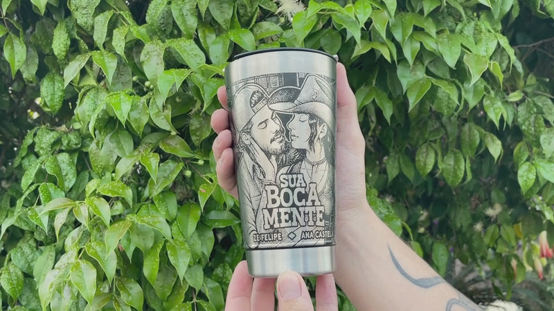 Sua Boca Mente – Copo Térmico Preto Personalizado 360° a Laser + Brinde