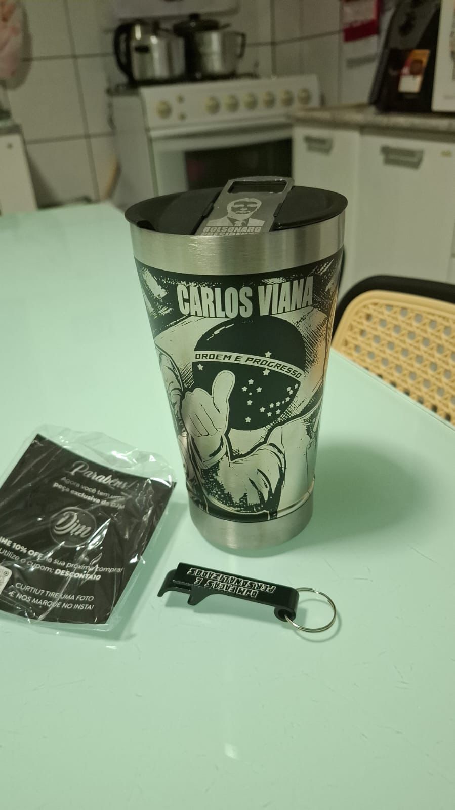 Corinthians – Copo Térmico Preto Personalizado 360° a Laser + Brinde